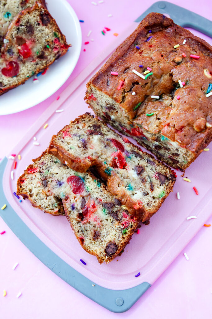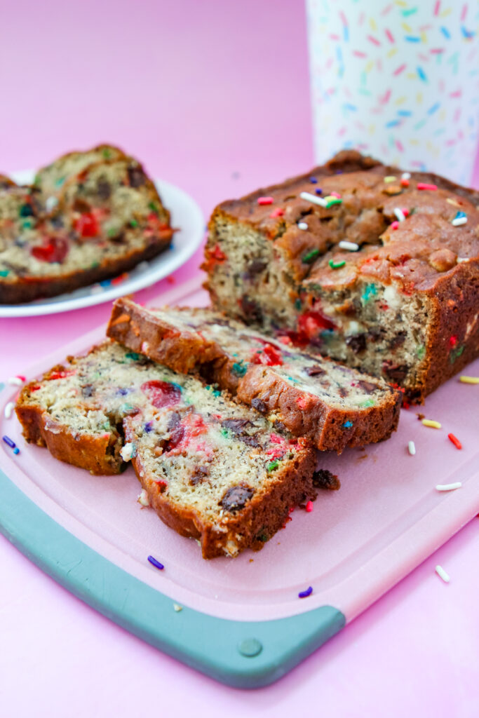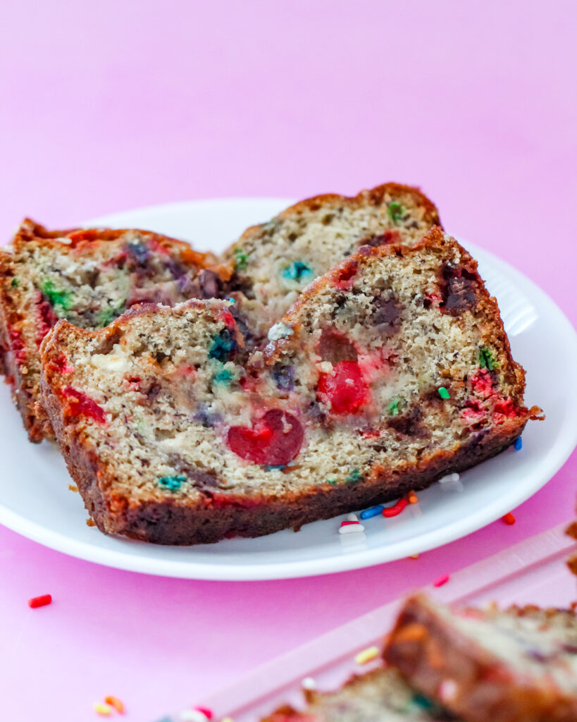 Slice and top with whipped cream, sprinkles, and extra cherries for a true sundae feel—or enjoy plain as a fun twist on banana bread.