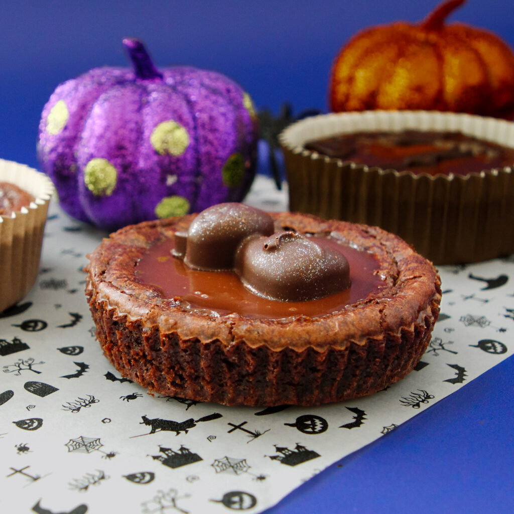 Black cats and Halloween go hand in hand, and these Black Cat Brownie Tarts are as tasty as they are spooky. Each fudgy tart is filled with silky milk chocolate ganache and topped with a shiny chocolate cat that sparkles with a dusting of edible glitter. They’re the perfect treat for a cozy movie night featuring famous feline favorites like Thackery Binx from Hocus Pocus or Salem from Sabrina the Teenage Witch. Cute, rich, and a little mysterious- these tarts are pure Halloween magic.