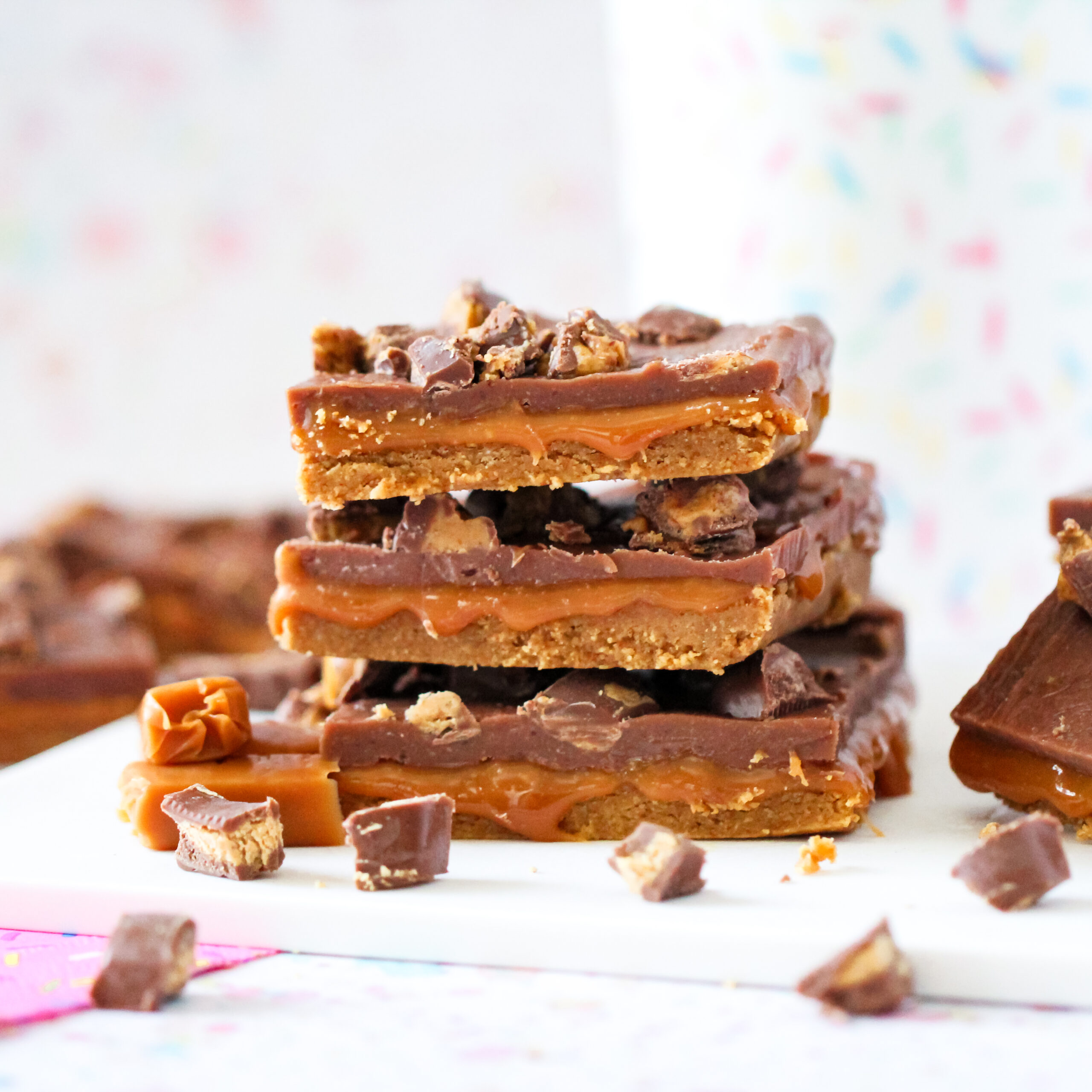 Birthday Cake Oreos filled with edible cookie dough, dipped in chocolate, and topped with rainbow sprinkles!