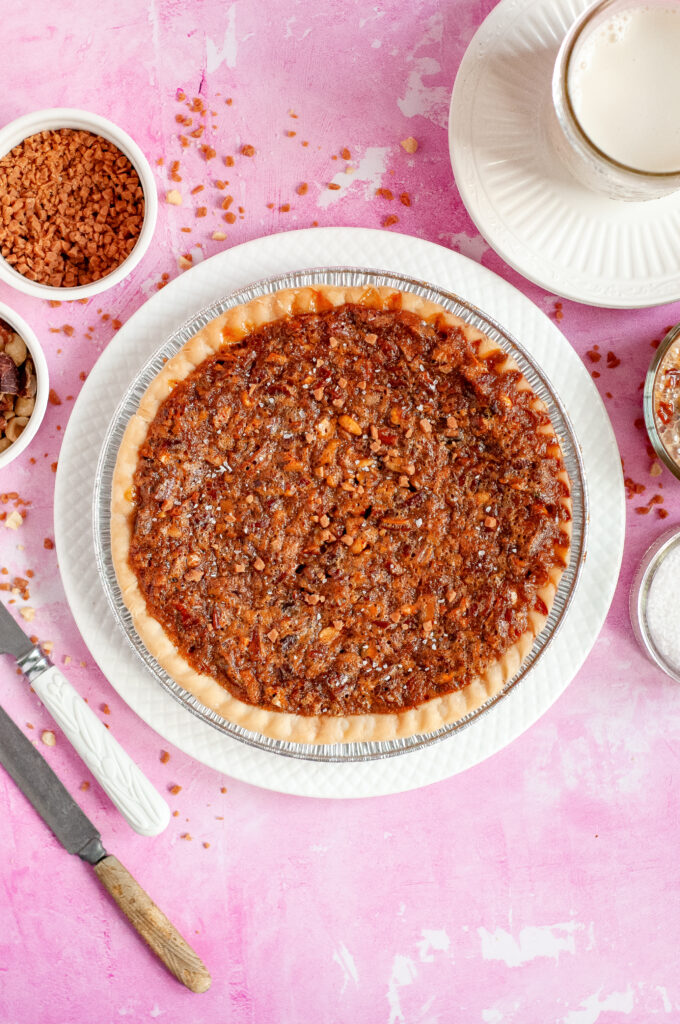 This Brown Butter Pecan Crunch Pie takes everything you love about classic pecan pie and gives it a warm, caramel-forward twist. Browning the butter adds a deep, nutty flavor, the toffee bits melt into crunchy pockets, and the pecans stay perfectly toasty as the filling bakes. It feels familiar and comforting with just enough of an upgrade to make it feel special for any holiday table or family celebration.
