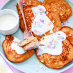 If you’re hosting a spring brunch or Easter morning at your house, these pancakes are such a fun way to make the table feel a little more special. I love stacking them high on a pretty plate, drizzling on the cream cheese glaze, and adding a few fresh berries just to make everything feel bright and happy. Pair them with fruit salad, some scrambled eggs, and a pitcher of lemonade or iced tea, and suddenly it feels like a full-on spring celebration.