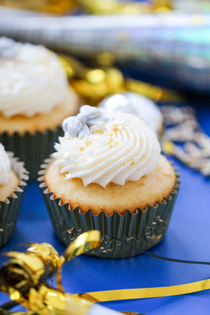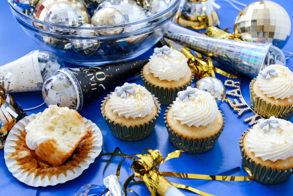 Bake these earlier in the evening, then bring them out just before midnight while the New Year’s countdown specials are on TV. Light a few candles, pour a bubbly drink, and serve the cupcakes when the clock hits twelve. Simple, festive, and no extra cleanup.