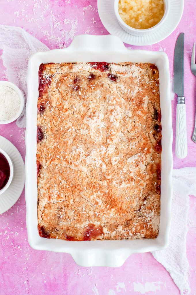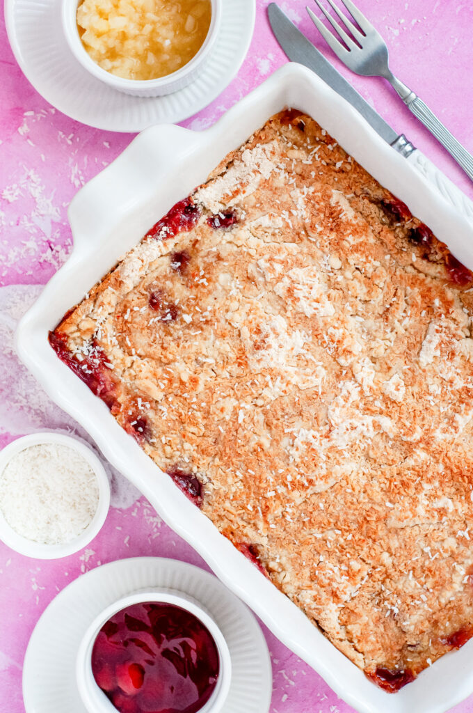 This Cherry Pineapple Pantry Cake is one of those recipes you make when you want something sweet without pulling out a mixing bowl. You just layer everything in the pan, slide it into the oven, and let it do its thing. The cherries bake down into a soft fruit layer, the pineapple keeps everything moist, and the top turns golden and buttery. It’s the kind of dessert you bring along to a church supper or school party and know it’ll be gone by the time you go back for seconds.