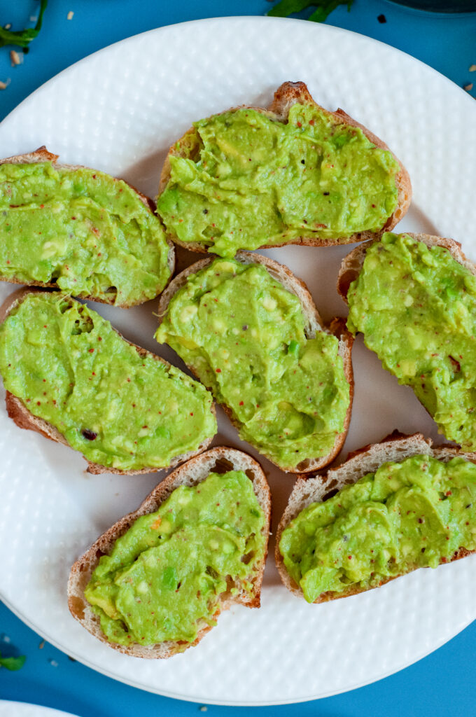 Toast the baguette and prep the avocado separately. Assemble just before serving so the bread stays crisp.