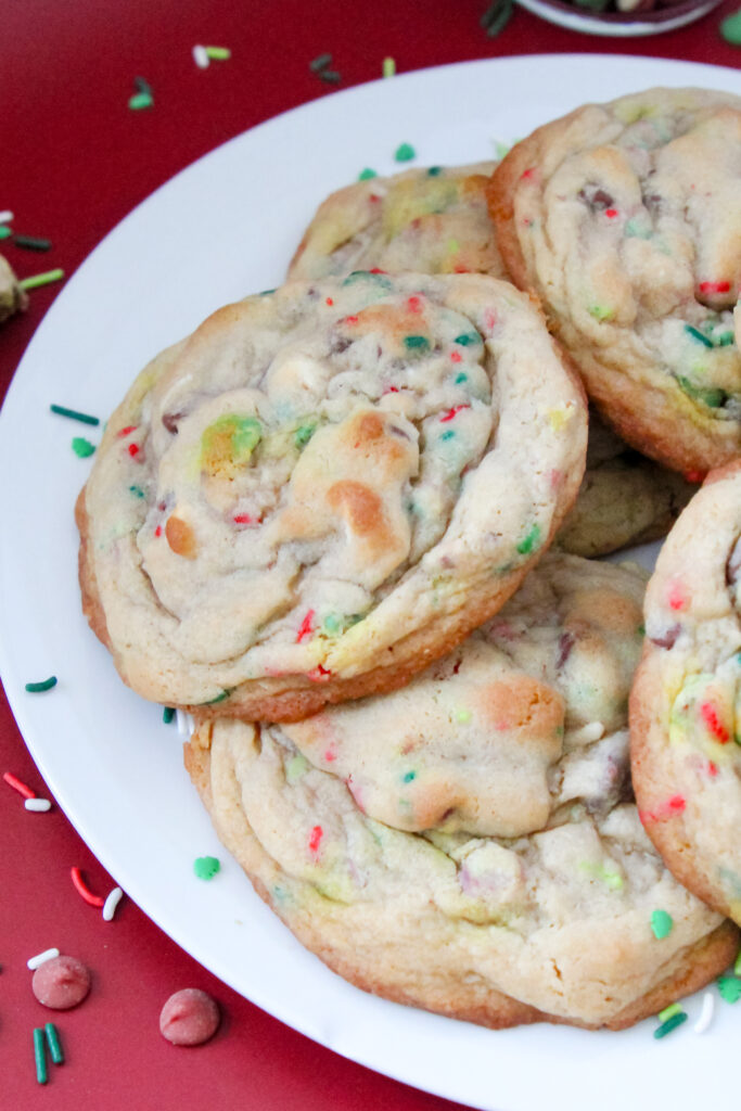 These Christmas Party Jumbo Cookies are made for the kind of holiday baking that feels extra fun and a little over-the-top in the best way. Big, thick, and packed with chocolate chunks, red and green baking chips, and cheerful sprinkles, they bake up with golden edges and soft, gooey centers that look straight out of a bakery case. They’re perfect for cookie boxes, classroom treats, or a cozy night of Christmas movie baking when you want a cookie that feels special without complicated steps.