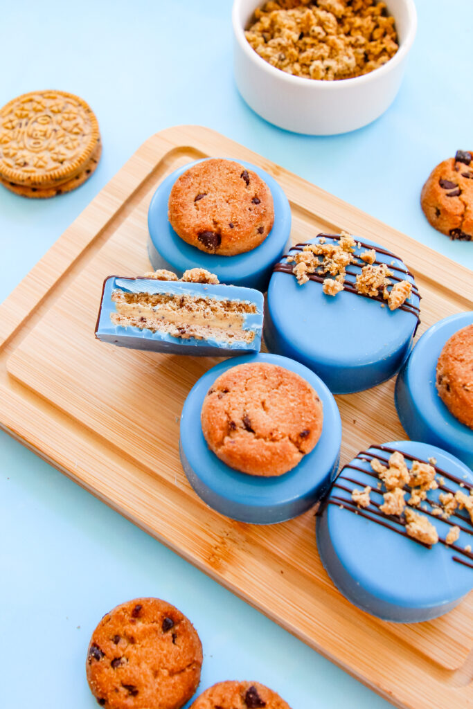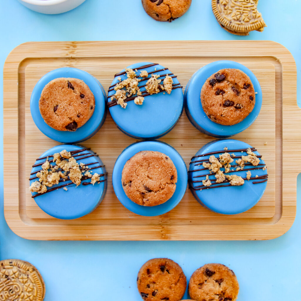 If Cookie Monster made dessert, it would probably look a lot like this. These Cookie Dough Crunch Oreos are bold, bright blue, stuffed with Cookie Dough Oreos, and finished with chocolate drizzle, crushed cookies, and mini Chips Ahoy on top. They’re perfect anytime you want a fun, cookie-packed treat.