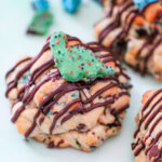 These Dynamite Dino Jumbo Cookies are thick, chunky, and ready to stomp into your dessert lineup. Each one is packed with chocolate pieces and crushed Mother’s Dynamite Dinosaurs cookies for a cookie-within-a-cookie moment that feels like digging up hidden fossils. Press a whole dino on top of drizzled chocolate, and suddenly you have a bakery cookie that looks like it escaped from a prehistoric theme park. Big, bold, and full of chocolate, these are the kind of cookies that take over the plate and make dessert feel like an adventure.