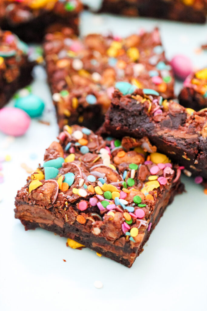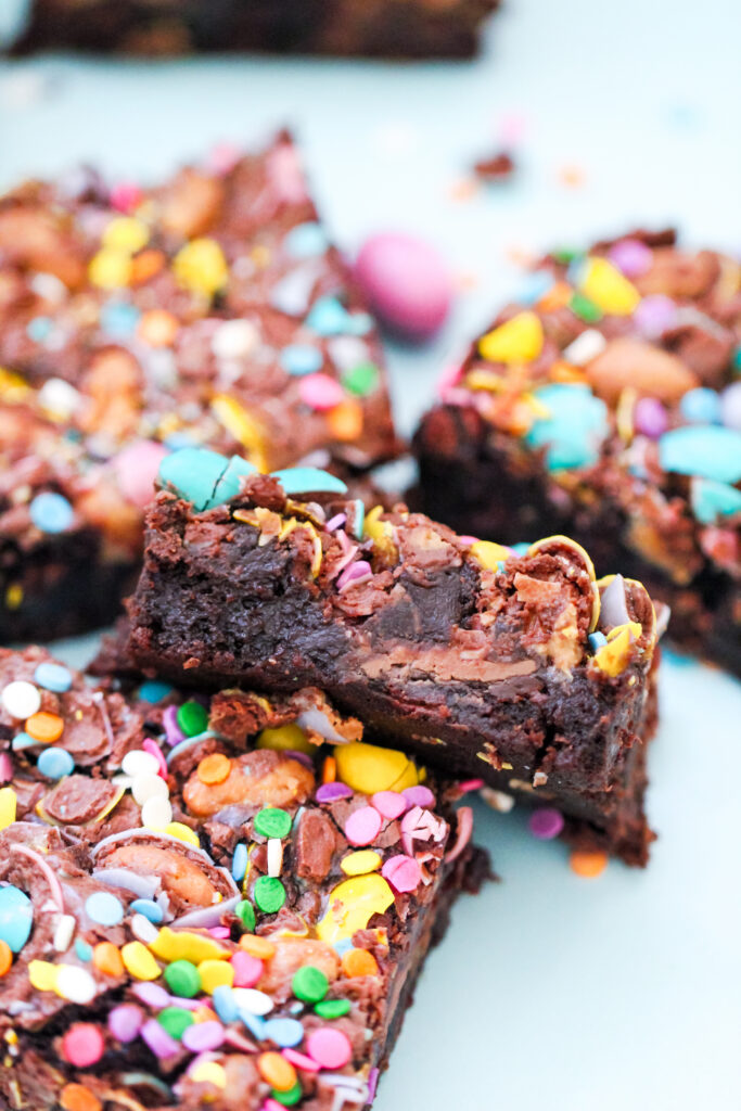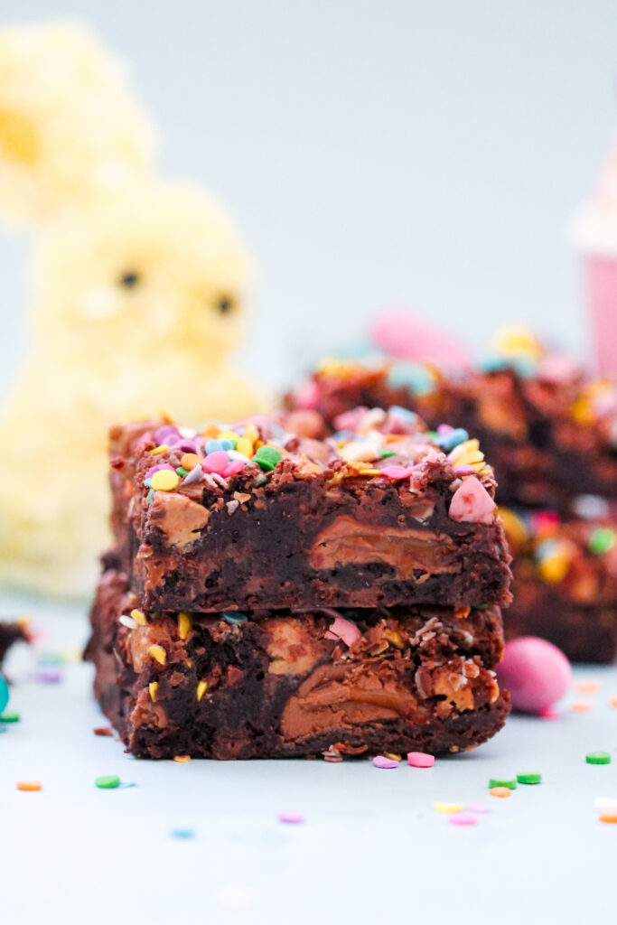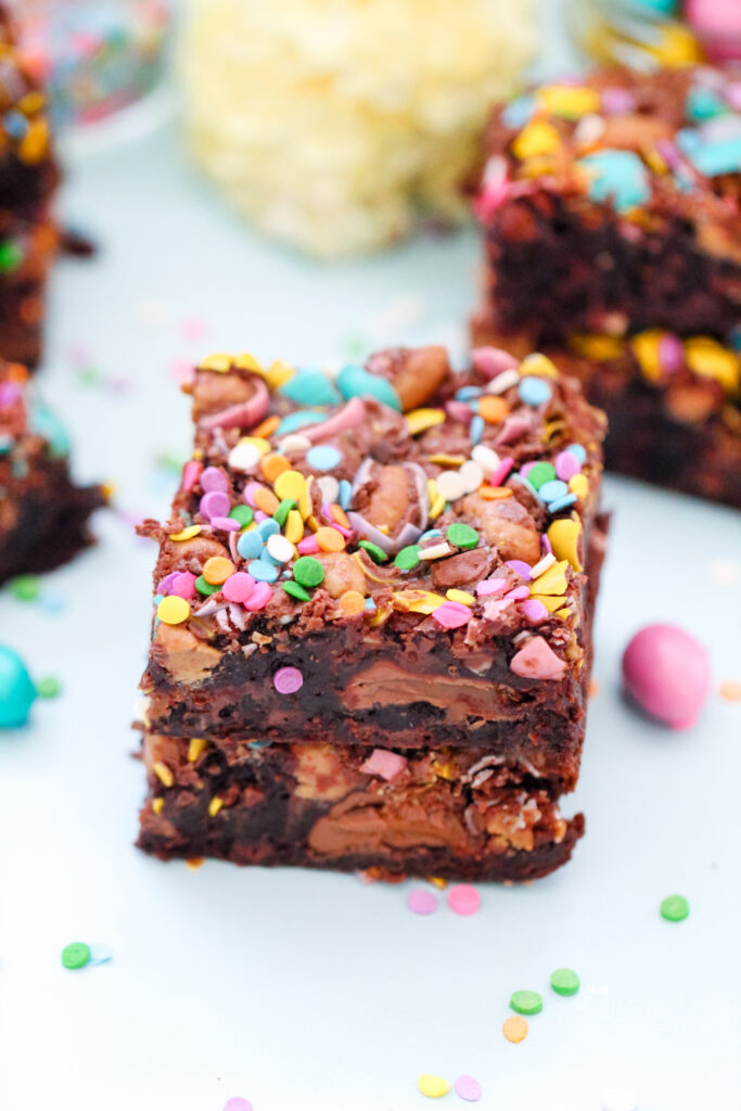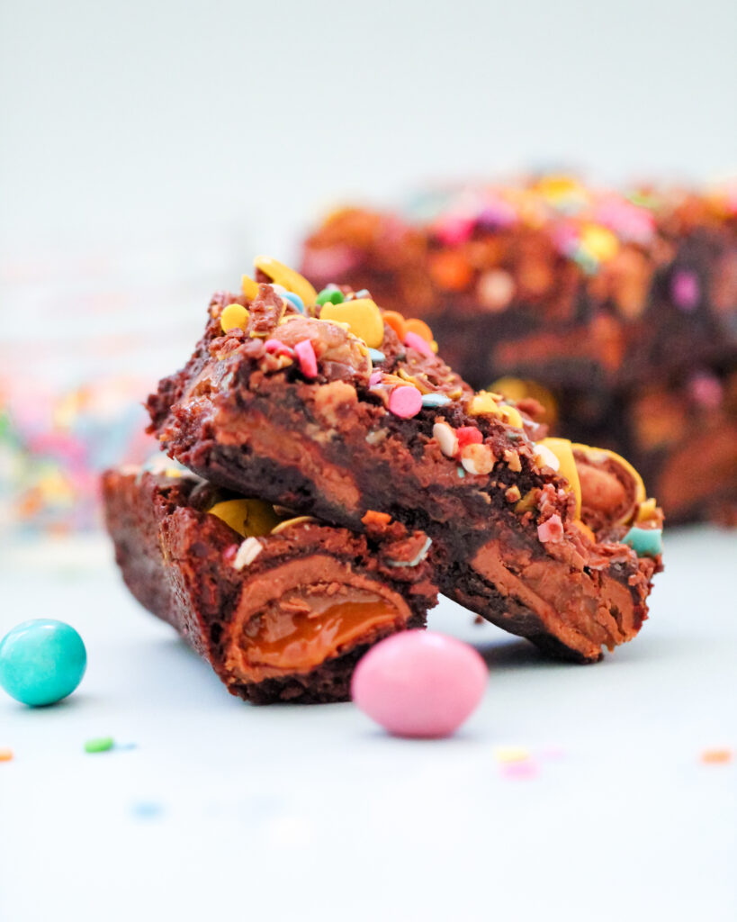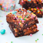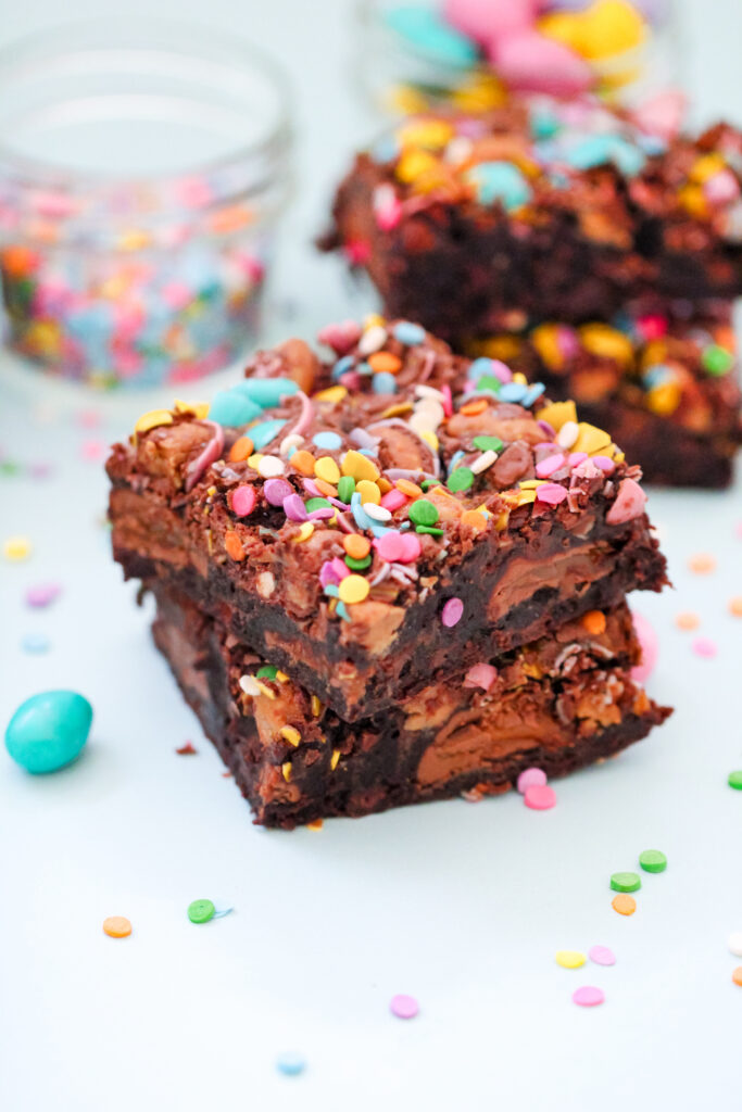 Birthday Cake Oreos filled with edible cookie dough, dipped in chocolate, and topped with rainbow sprinkles!