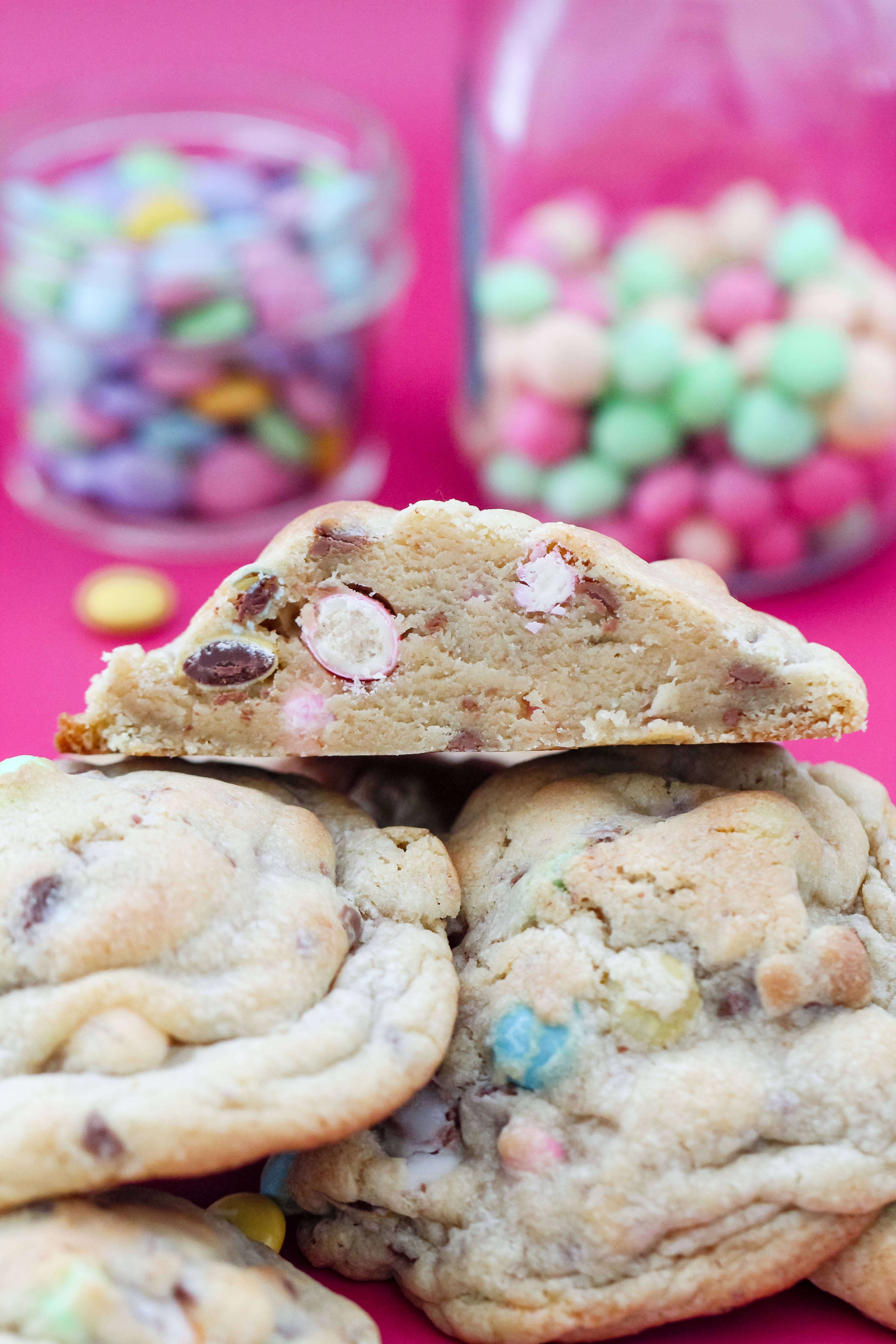 These Easter Explosion Jumbo Cookies have all the best candy packed into giant, bakery-style cookies. They’re thick, golden, and loaded with melty Cadbury Creme Eggs, pastel M&M’s, and limited-edition Marshmallow Treat M&M’s for extra fun. The outside has that slight crisp edge while the inside stays soft and gooey. This might become your new go-to cookie… you may even want to leave a few out for the Easter Bunny.