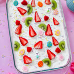 Make a Funfetti cake in a 9 x 13 pan and bake it as directed.