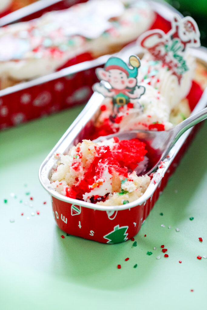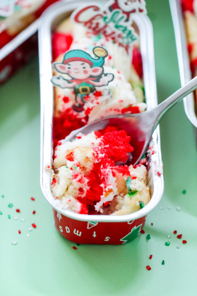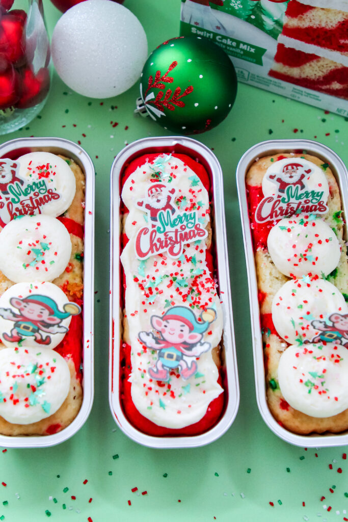 The Elf on the Shelf Funfetti mix is great for theme and color, but a regular Funfetti or vanilla swirl cake mix will work just as well if that’s what you have on hand.