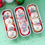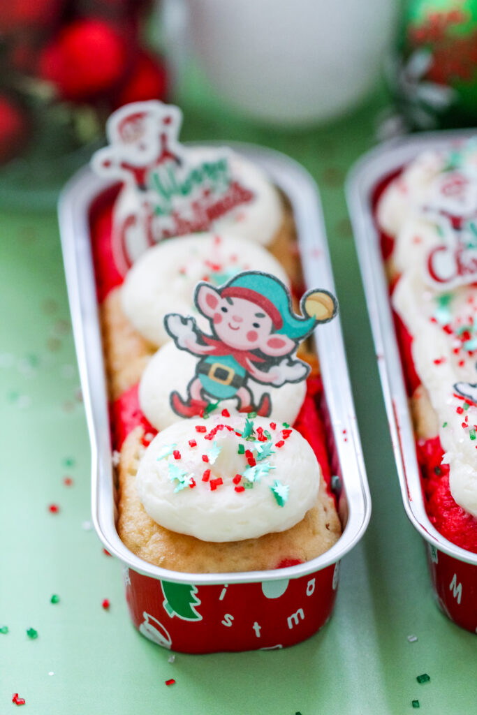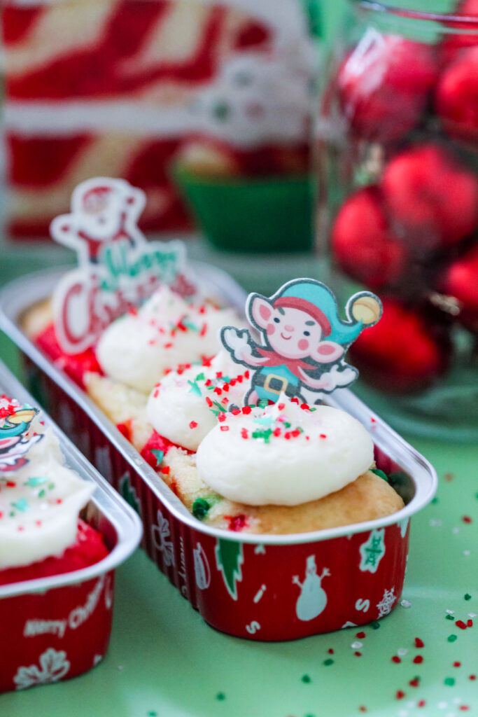 These Elf-Approved Confetti Tray Cakes are pure holiday fun from start to finish. Made with Elf on the Shelf Funfetti cake mix and baked right into festive holiday trays, these little cakes feel colorful, cheerful, and completely Christmas-ready. The swirled red-and-white batter, fluffy vanilla frosting, and cute character toppers make them perfect for Elf arrivals, holiday parties, or adding a little extra magic to December baking.
