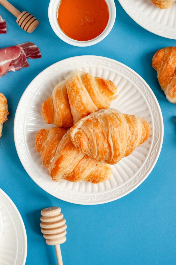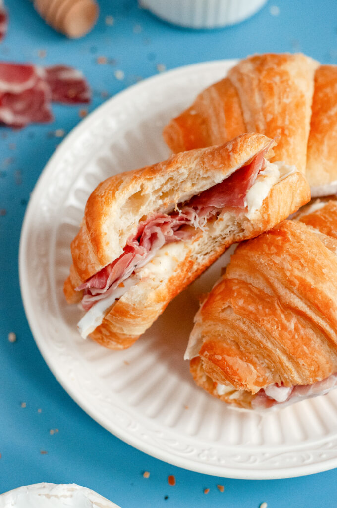 Yes. Regular croissants work well if you’re serving fewer people or want something more filling. Just slice and warm them the same way.