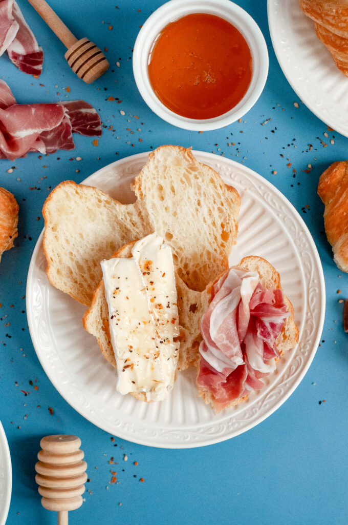 These Fancy Little Honey & Brie Croissants are one of those sweet-salty bites that instantly elevate any spread. Buttery mini croissants are filled with melty Brie, layered with prosciutto, and finished with a drizzle of honey for a combination that always gets noticed. They’re perfect for brunch boards, casual gatherings, or pretty setups like bridal showers where you want something simple that still feels special. Easy to make, easy to love, and always the first thing to disappear.