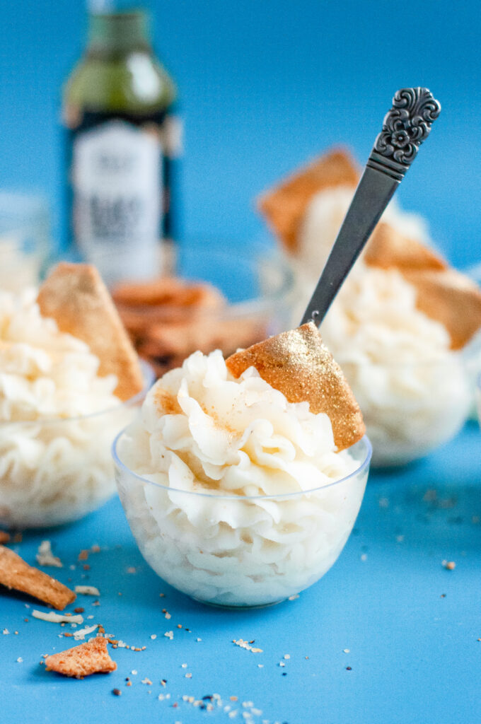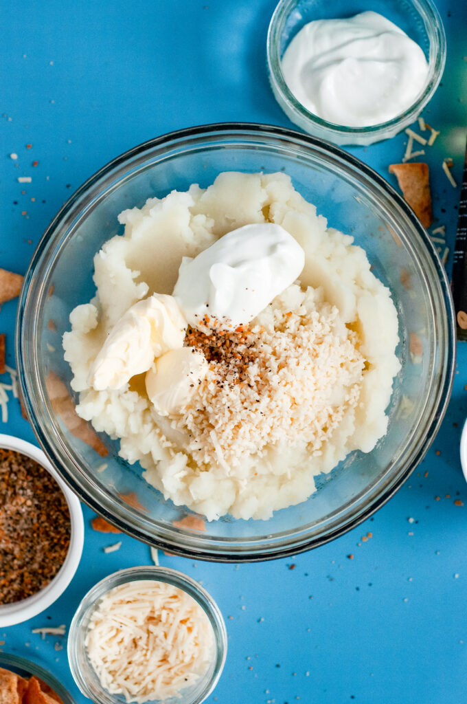 Turn your appetizer table into a mini mash bar by offering different crunchy toppers like extra parmesan crisps, fresh herbs, or cracked pepper so everyone can customize their mash cups.