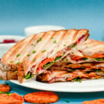 Yes, peeling helps the slices cook evenly and keeps the texture soft inside the panini. If you prefer the skin on for extra fiber, slice very thin so it doesn’t make the sandwich tough.