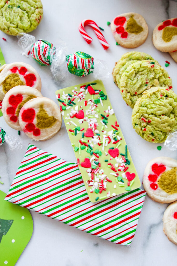The Grinchy Treat Kit is the kind of festive project that feels just as fun to make as it is to share. With a mix of classic Grinch cookies, bright lime-green sprinkle cookies, and homemade chocolate bars, each kit becomes a colorful little bundle of Christmas cheer. Pack everything into a cute Grinch foil pan, wrap up the chocolate bars, and suddenly you have an easy treat box perfect for gifting, sharing, or munching on while cruising through neighborhoods to admire all the twinkling holiday lights.
