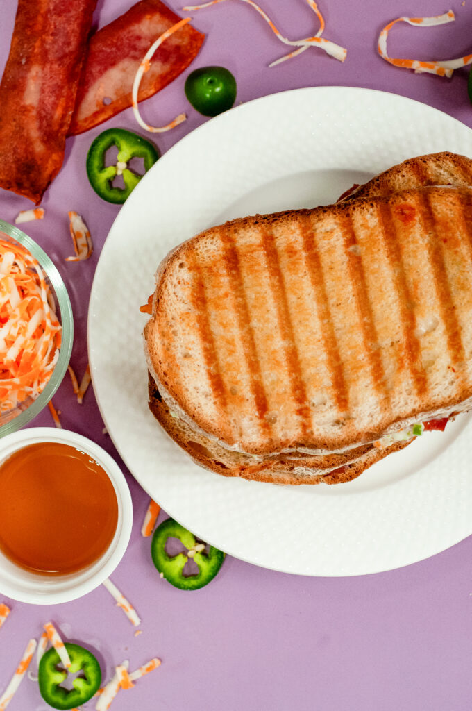 There’s something special about those quiet late-night hours when the world slows down and the cravings kick in. That’s where the Late-Night Jalapeño Popper Melt comes in- melty, spicy, and just the right amount of fun. It’s everything you love about jalapeño poppers, pressed between two buttery slices of bread and finished with a touch of honey. It’s the ideal bite for study breaks, cozy reading nights, or catching up on your favorite late-night show.