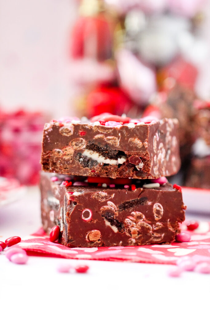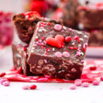 Birthday Cake Oreos filled with edible cookie dough, dipped in chocolate, and topped with rainbow sprinkles!