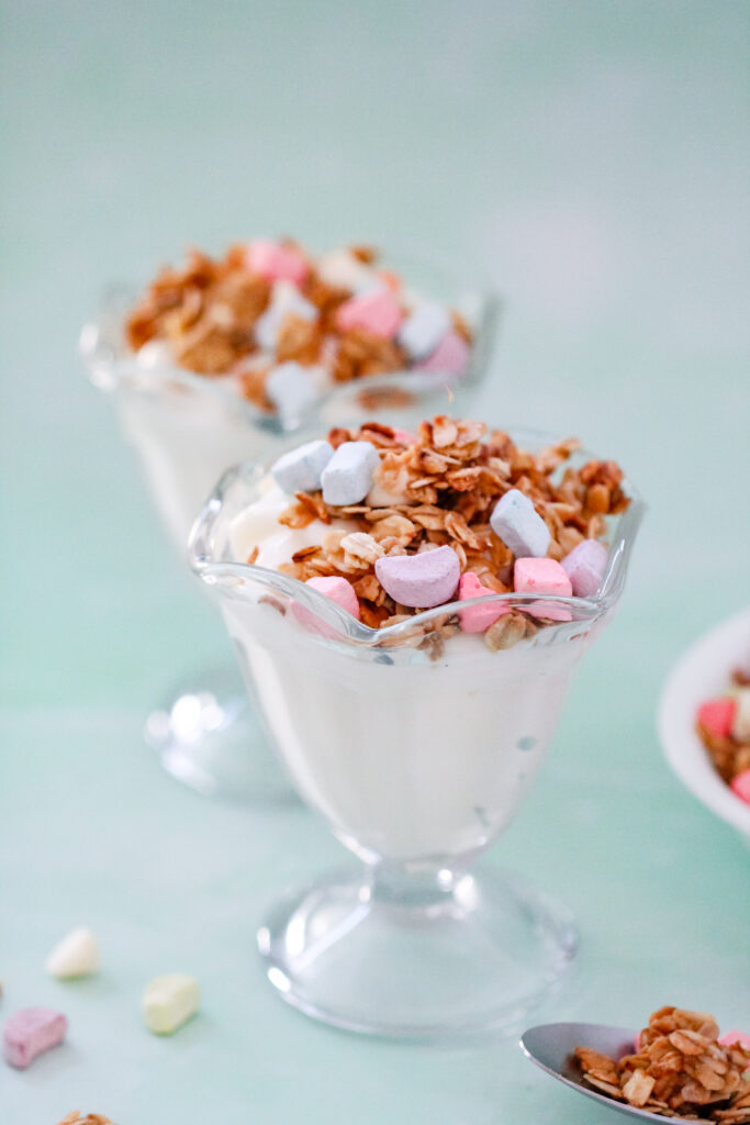 Make this granola and spoon it over vanilla yogurt for a festive midday snack during St. Paddy’s week. Add a few extra marshmallows on top and suddenly your afternoon yogurt feels way more fun.