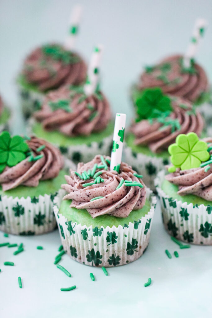 Watch Irish Wish starring Lindsay Lohan while enjoying these cupcakes. It’s the perfect lighthearted St. Patrick’s Day movie, and a mint cupcake with cookies-and-cream frosting fits right in with the festive mood.