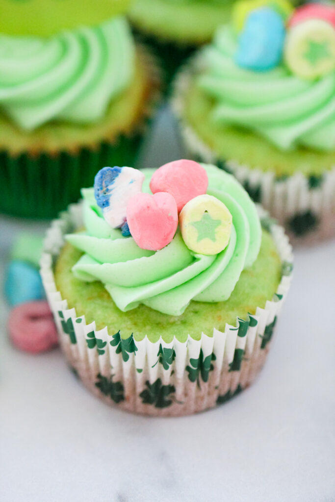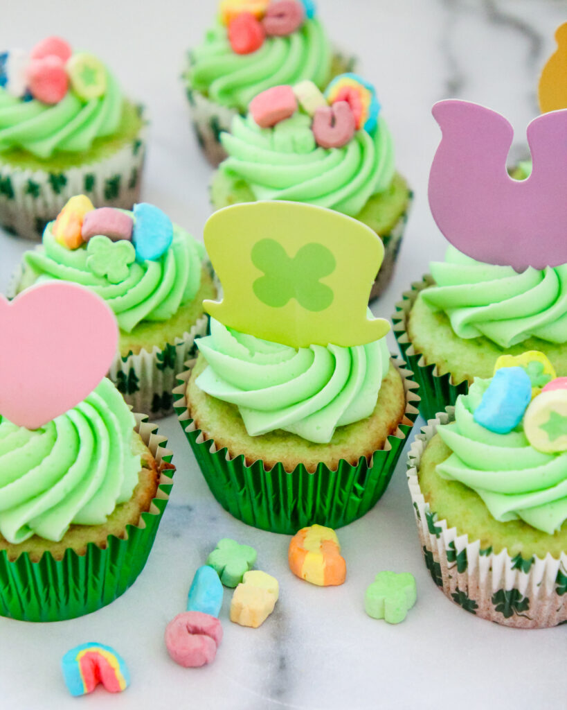 Lucky Pistachio Charm Cupcakes take a white cake mix and turn it into something that feels truly bakery-level. They’re soft, buttery, and layered with a light pistachio flavor that gives them that natural green color, perfect for St. Paddy’s. The fluffy frosting and Lucky Charms marshmallows on top bring in the fun, but the flavor and texture are what make these stand out. You’ll never be able to tell that they were semi-homemade.