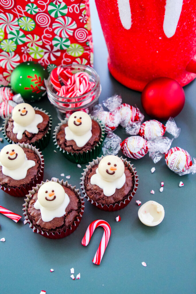 Melted Snowman Brownie Cupcakes take a classic brownie mix and turn it into a fun winter treat. Each cupcake gets topped with a Lindor truffle “snowman” sitting in a little puddle of white chocolate, giving you that cute melted effect without extra steps. They’re the kind of dessert kids love to help decorate during winter break and a fun way to bring something sweet and seasonal to any holiday gathering.