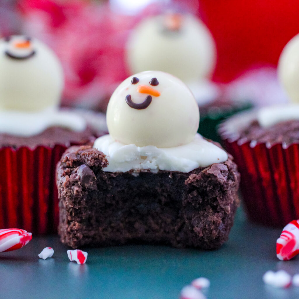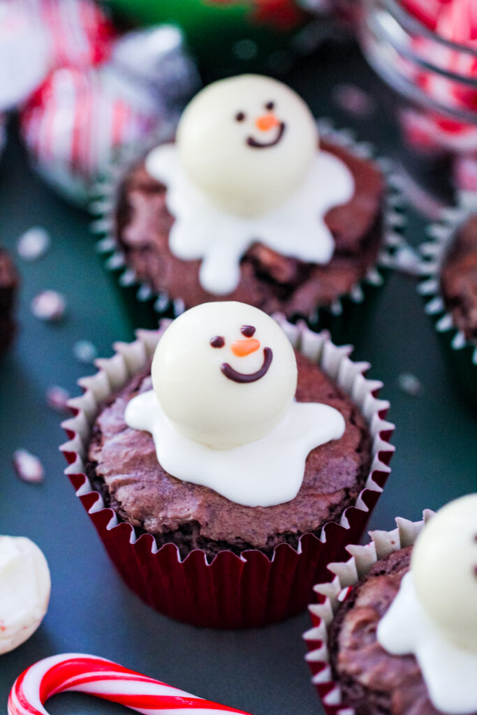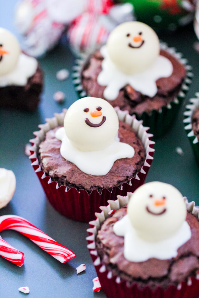 You can freeze the undecorated brownies for up to two months. Add the snowman decorations after thawing for the cleanest look.
