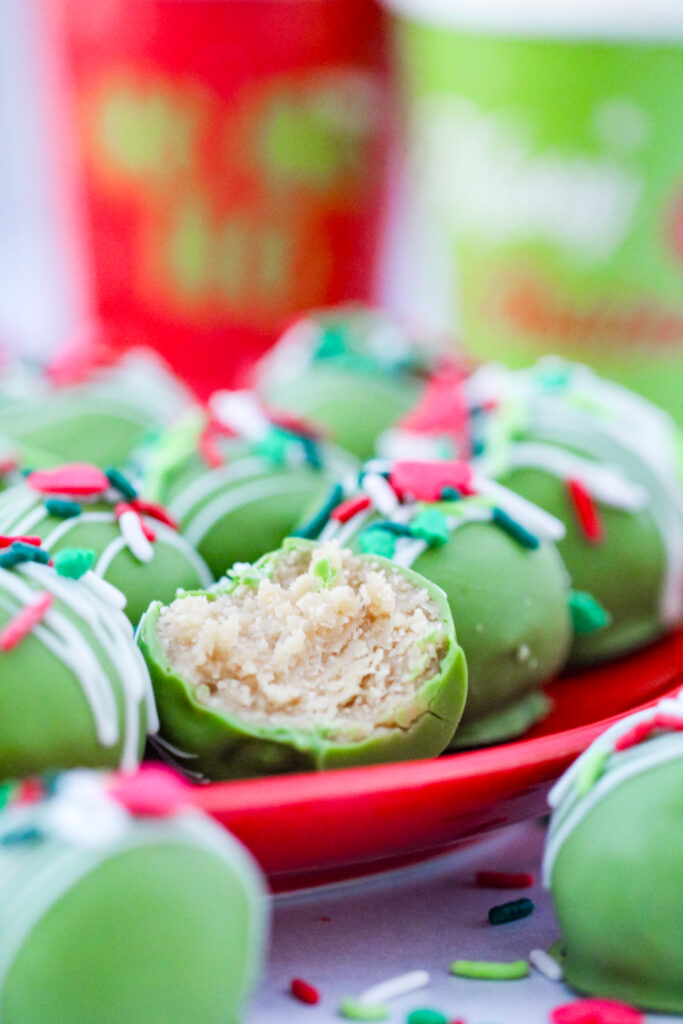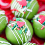 Package the truffles in mini boxes labeled “Merry Mischief Treats” and deliver them to friends, teachers, or neighbors with a note that says, “For the moments your heart grows three sizes.” They also make adorable additions to holiday dessert boards or Grinch-themed movie nights.