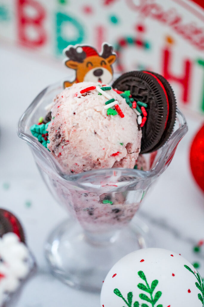 This is a great one to have ready in the freezer for Christmas morning or later in the day after presents are opened. It’s fun to spin, mix in the Oreos and sprinkles, and then scoop it up while everyone’s still in that relaxed, happy post-present mood. Simple, festive, and exactly the kind of treat that fits right into a Christmas at home.