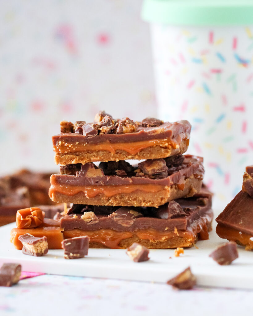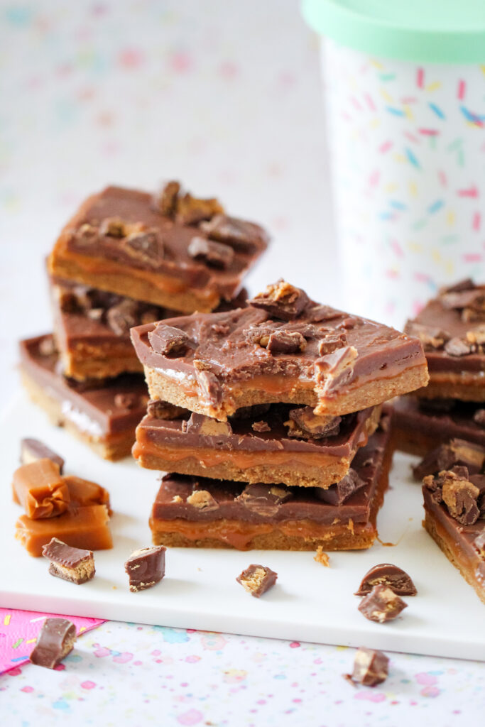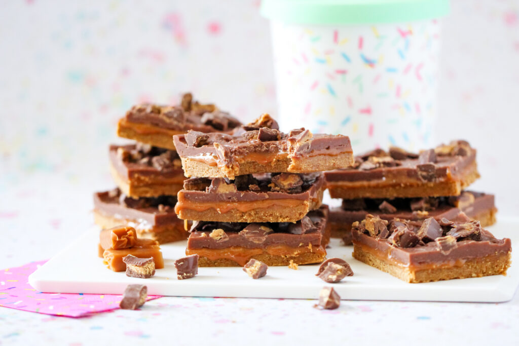 Plan for at least 3 to 4 hours in the fridge. This allows the fudge and caramel layers to set completely for clean cuts.