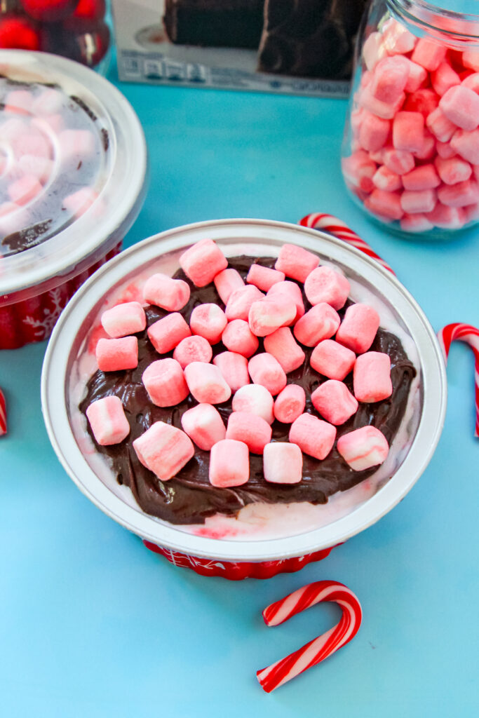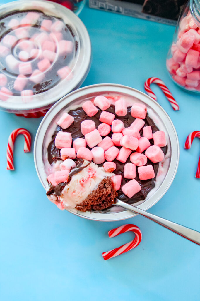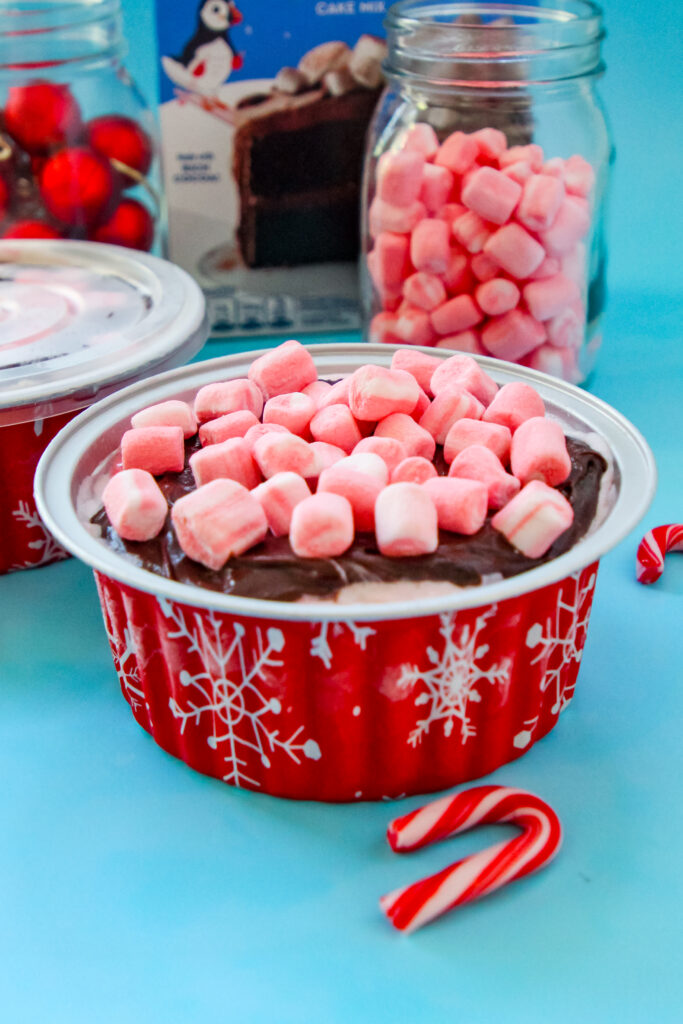 Peppermint Hot Cocoa Ice Cream Cakes bring together everything you love about the season in one frosty, chocolate-peppermint treat. Each mini cake starts with a rich hot cocoa base baked right inside a tin, then gets filled with creamy peppermint ice cream and finished with a layer of fudge frosting and peppermint marshmallows.