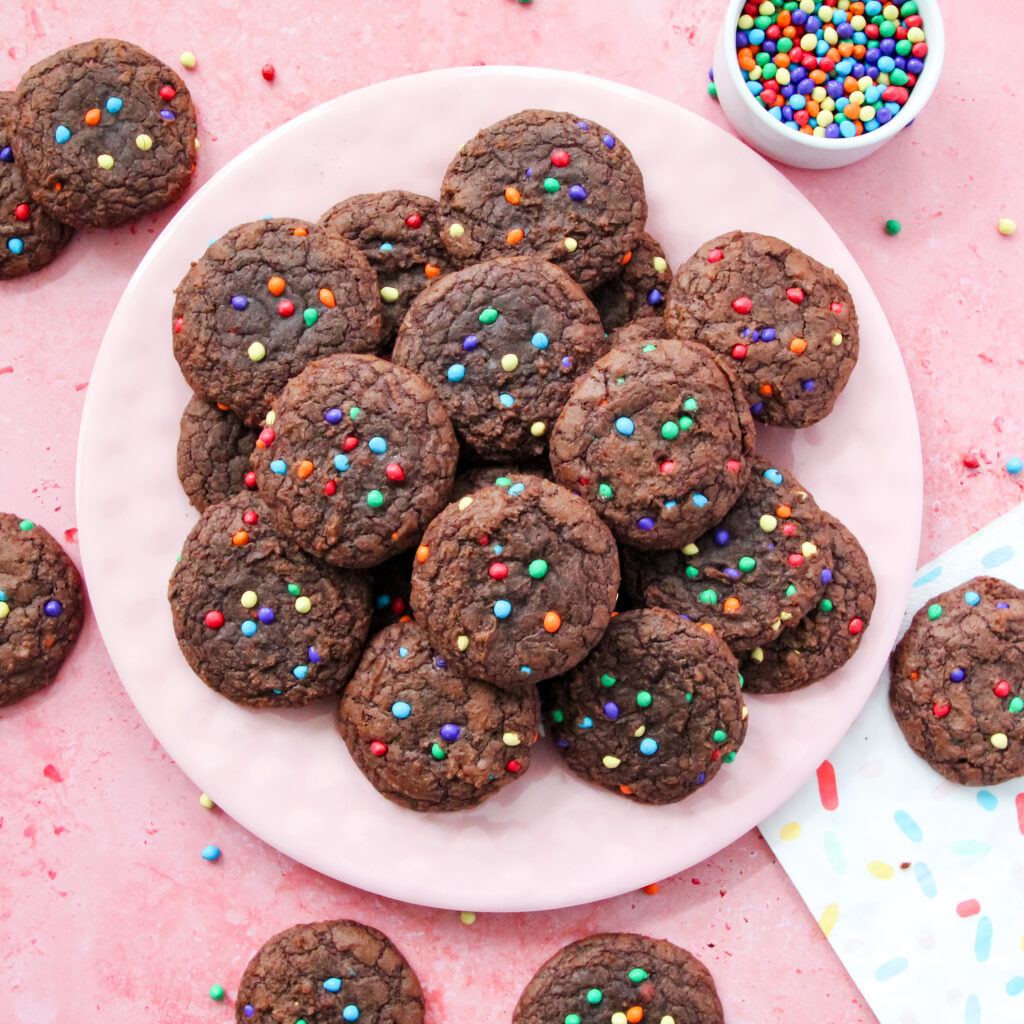 Let me tell you about one of the easiest, most fun chocolate treats you’ll ever make. These Rainbow Galaxy Brownie Cookies start with a simple box of brownie mix and turn into the fudgiest, chewiest cookies with little pops of colorful crunch in every bite. They’re the kind of dessert you throw together when you want something chocolatey and fun without spending all day in the kitchen. No frosting, no stress, just big brownie flavor with a rainbow twist.