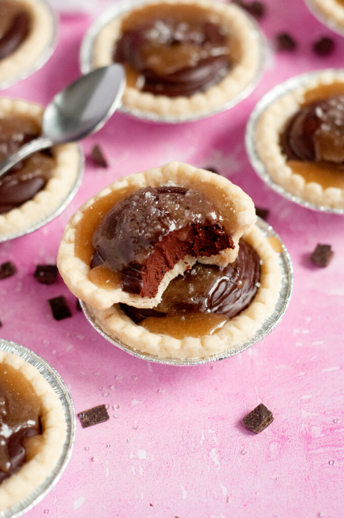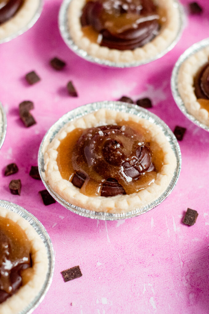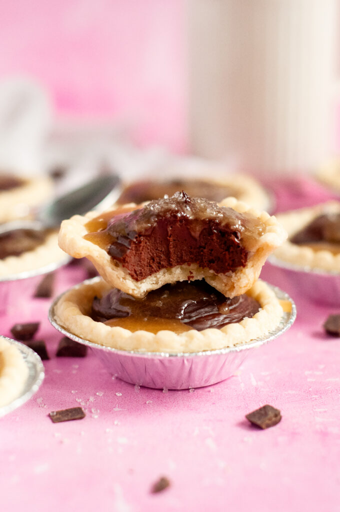Salted Chocolate Caramel Silk Tarts
