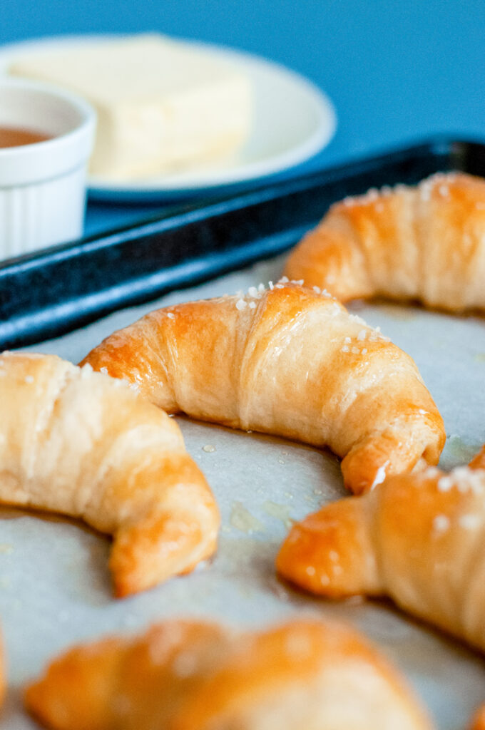Serve these Salted Honey Butter Crescent Rolls at your next big family dinner and make them the star of the bread basket! Add a fancy touch by wrapping the basket in a linen napkin and passing them around the table.