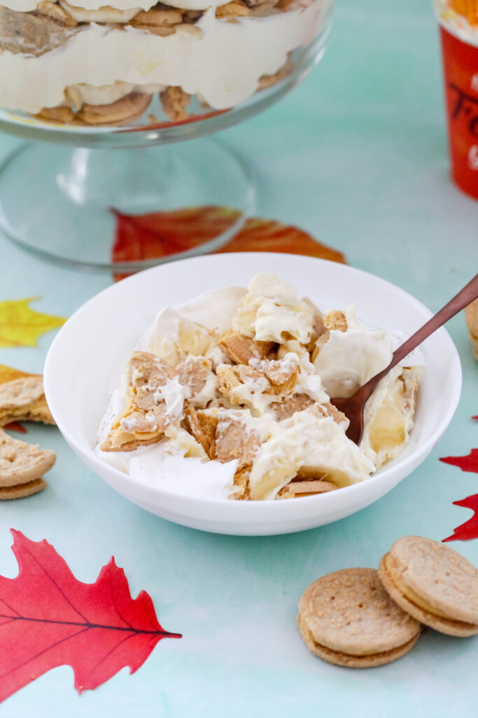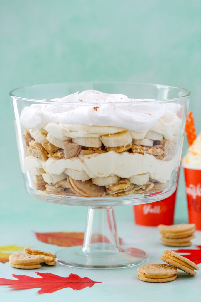 This Sprinkle of Fall Banana Pudding Trifle layers creamy banana pudding, apple pie spice, and cookie sweetness into one irresistible dessert. Each bite delivers the perfect mix of smooth, spiced, and crunchy- a flavor-packed tribute to everything we love about fall.