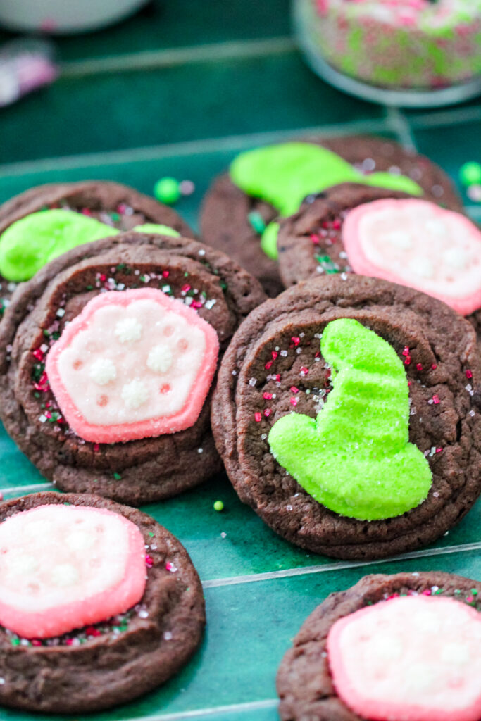 Bake the cookies first, then press the marshmallows on top and return them to the oven for just 1–2 minutes until puffed and glossy.
