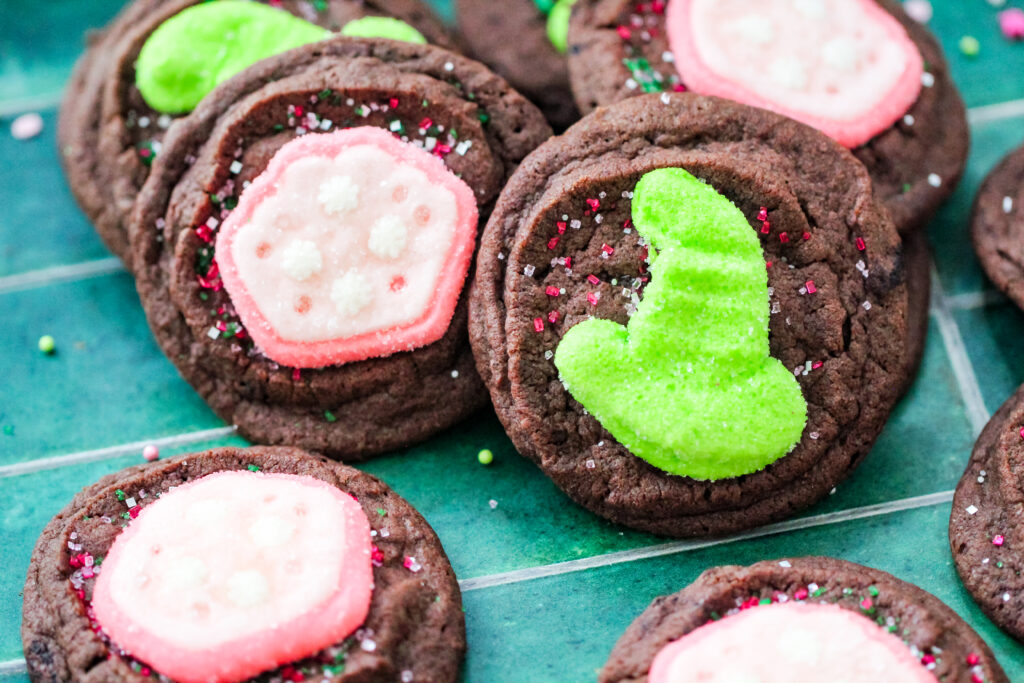 There’s no place like the kitchen when you’re baking something Wicked. These double chocolate cookies capture the magic of pink and green—rich, fudgy dough meets gooey marshmallows and glittery sugar for a treat that feels straight out of Oz.